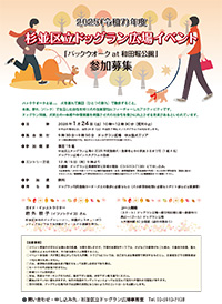 このドッグラン広場は、都民の共有財産「都立和田堀公園」内に杉並区が設置運営するものです。愛犬家とコンパニオンドッグ(伴侶犬)の「健康増進・社会化」という目的のほか、犬の愛護福祉、適正飼養やマナーアップの促進など「人・地域・どうぶつ(犬)の豊かな共生社会」を創るためにも活用される公共財産です。ご理解のうえ、誰もが楽しく快適に利用できる、笑顔で犬を見守れる場所となるようご協力をお願い致します。